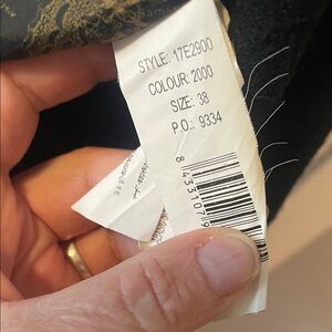 Chic black pea coat with colorful floral embroidery. Features faux fur collar and cuffs. Double-breasted style. Size is 38 or woman’s M