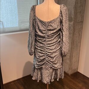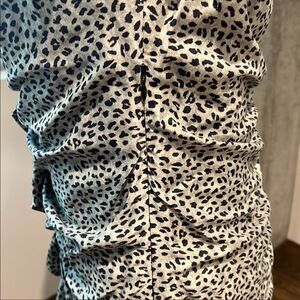 She's flirty, she's fun, she's fashion! Our viscose silk is the perfect fabric to craft the ruffle that cascades down the center from the sweetheart neckline. A billowing 3/4" sleeve meets a silhouette that follows the natural curves of your body, ending in a cheeky flouncy skirt that will having you feeling in touch with your feminine side.