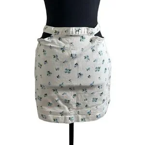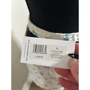 We Wore What White Skirt with Blue Flowers and Cut-out Detail, Size S