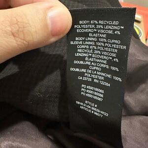 Content: 67% recycled polyester, 29% LENZING™ ECOVERO™ Viscose, 4% elastane; Lining: 100% cupro; Sleeve Lining: 100% polyester