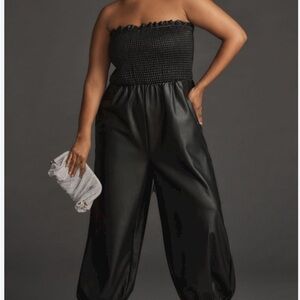 Anthropologie women’s jumpsuit Faux Leather strapless Balloon black Size S NWT