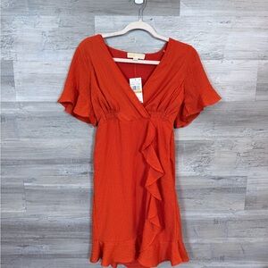 Michael Kors NWT Optic Orange Ruffle Dress Size S