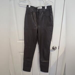 Aritzia Wilfred Melina Brown Vegan Leather Straight Leg Pants Size 4