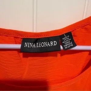 NEW Nina Leonard Vibrant Orange Puff Sleeve Midi Dress
