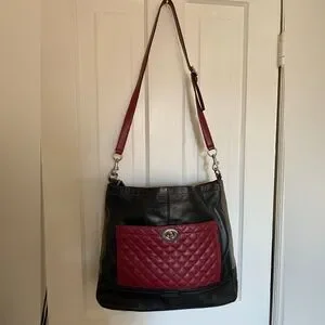 Coach Black and Burgundy Quilted Shoulder Bag