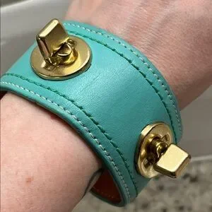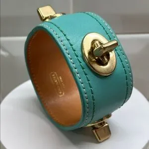 Coach Turquoise Leather Cuff Bangle Bracelet EUC