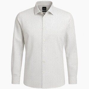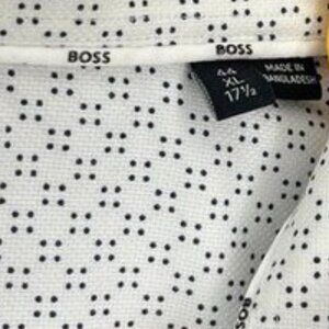 Keywords: Hugo Boss shirt, BOSS slim fit, men’s dress shirt, white patterned shirt, micro-dot, modern fit, stretch cotton, business casual, office wear, date night style, pallet item, MissSpike1 closet