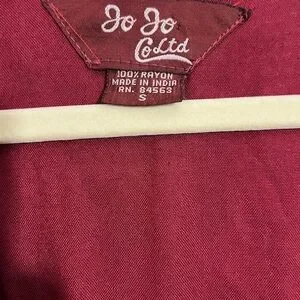 Stylish red top by Jo Jo Co Ltd. Made from 100% rayon for a comfortable fit. Features a cream accent for added style.