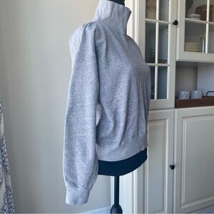 Buck Mason Interloop Mockneck Heather Gray. Size small in very good pre-owned condition. Oversized slouchy style slightly cropped. 100% cotton