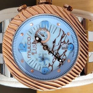 🩷NEW🩷Beautiful Mulco Lush Fish Chronograph Light Blue Dial Grey Silicone Swiss Watch MW5-2365-413