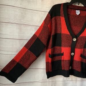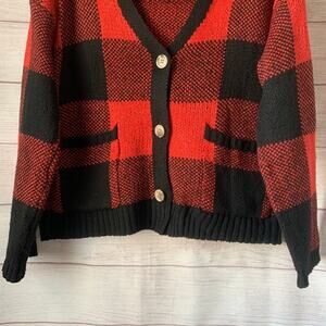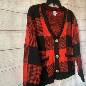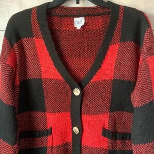 Cozy Co. by Cozy Casual Red and Black Plaid Sweater Cardigan Pockets Size S/M