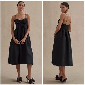 Sachin & Babi Sloane Taffeta Double-Bow Pleated Midi Dress Black Size 6