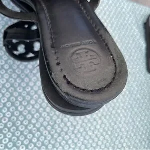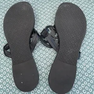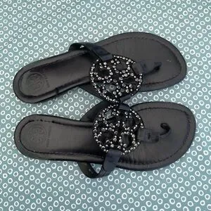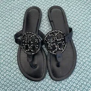 Tory Burch Black Sandals with Embellished Medallion