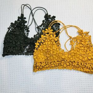 Free People Adella Crochet Lace Bralette Bundle Olive Green Mustard Yellow - M