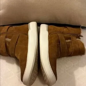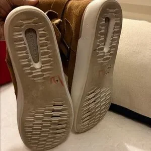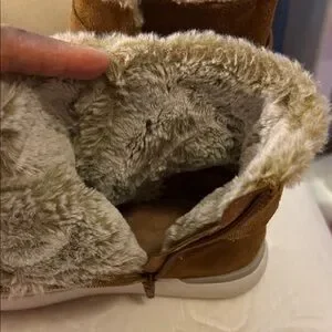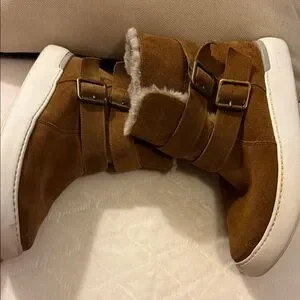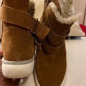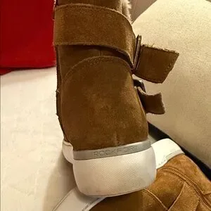 Up for sale pair Rockport Cobb Hill Collection ELYSSE Buckle Fur Women Leather Boots Booties. Good per owned condition . Side zip closure, double buckle straps and fur inside lining- warm! Chic Rockport boots in tan suede. Features plush fur trim and adjustable straps.