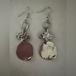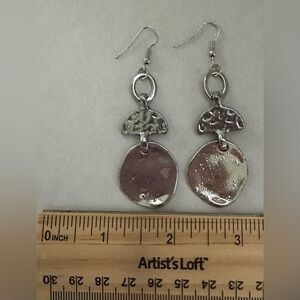 (#221)- Silver-tone bohemian- style dangle earrings with hammered textured.