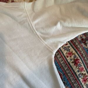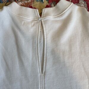 Cozy and soft white/cream top with bow design. Pearl clasp on back next with small opening. Longer length. Worn and washed once.