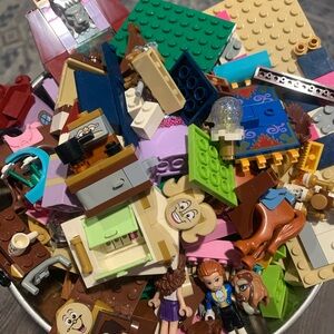 These Legos were my daughters’. They are mostly from Lego Friends sets. Miscellaneous pieces. This lot contains some pieces from a Disney beauty and the beast set.