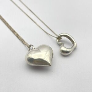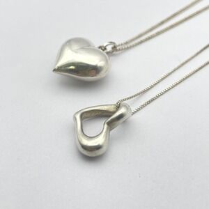 Set Sterling Silver Heart Necklaces Bundle Puffy Heart Hollow Heart Jewelry Set