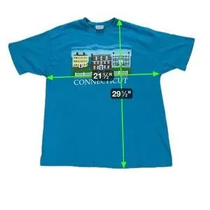 Keywords: vintage, 90s, single stitch, hanes beefy-t, connecticut, travel, souvenir, graphic tee, blue, architecture, houses
