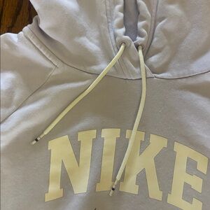 Classic Nike hoodie in light gray. Features bold logo and front pocket. Ideal for everyday wear. See pics 1 small stain