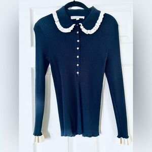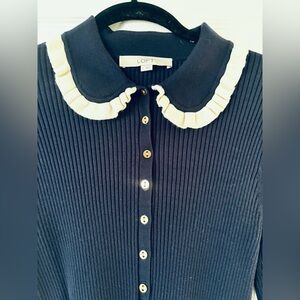 LOFT Elegant Navy 3/4 Button Down Sweater with White Accents Large