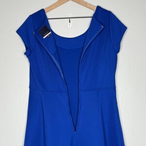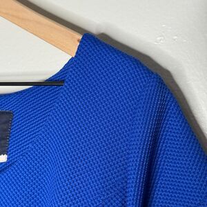 ModCloth Womens Sheath Dress XL Blue Textured Cutout Fit Flare Event Brunch 60s