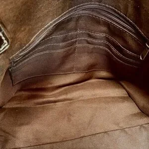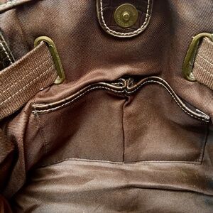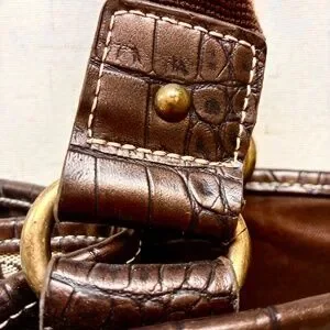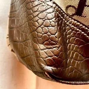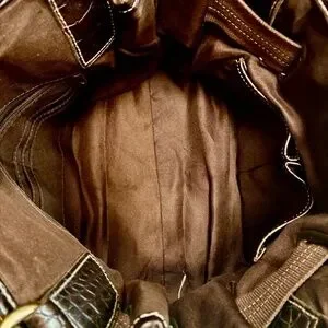Excellent condition. Clean and roomy interior with zip pocket, card holders and two pockets. Faux crocodile details.