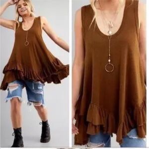 Effortless flowy tank featured in a lightweight design with a tiered ruffle hemline and low scoop neck. Original retail price is $70.