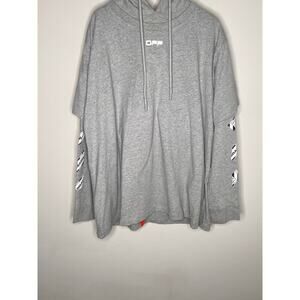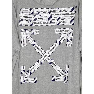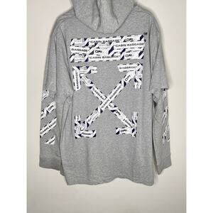 Off White Oversized Airport Tape Sweatshirt Hoodie Melange Gray White Mens Large