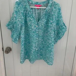 Lilly Pulitzer Women's Blue Patterned Top look like new