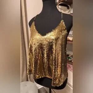 Shimmering gold sequin sleeveless top. Perfect for parties and special occasions.