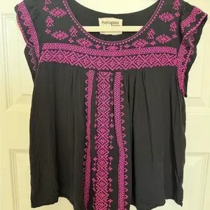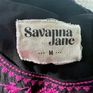 Savanna Jane Black boho peasant Top with Pink Embroidery flutter sleeve size med