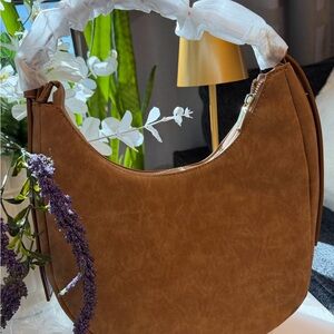 Brand New…It’s Chic, it’s on trent, and it’ll soon be carrying around all your daily must-have when you make it yours, this versatile Crescent bag fits into any aesthetic, while also fitting all your essentials thanks to the roomy interior and convenient inner pocket, Elevate your style with this chic tan shoulder bag. Perfect for daily use, it combines elegance and practicality, adjustable straps Shortest length 16.5” Longest length 21”, Faux Suede and Vegan Leather, 11.42”x3.95”x19.7”, smoke and pet free home, fast shipping!