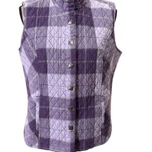 Keywords: Christopher & Banks vest, women’s quilted vest, purple vest, lavender plaid vest, XL vest, snap front vest, lined vest, lightweight vest, diamond stitch vest, side pocket vest, sleeveless outerwear, fall layering, winter layer, spring vest, casual travel vest