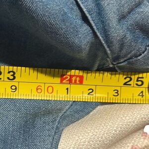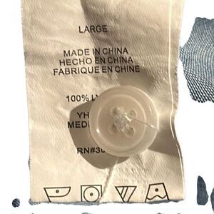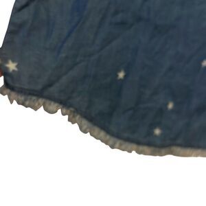 Thread & Supply Blue Star Print Button Front Chambray Frayed Hem Shirt Ladies Large