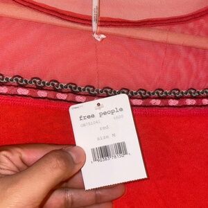 Free People High Tides Top Vibrant Orange Blouse with Bell Sleeves