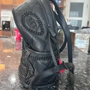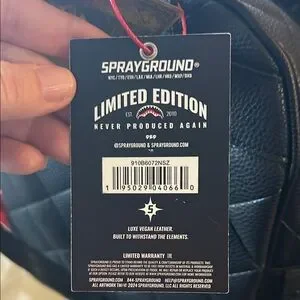 Stylish Sprayground backpack in black. Crafted from luxe vegan leather. Durable and trendy design.