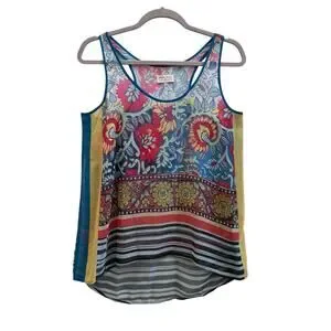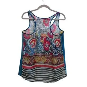 Dream Daily Anthropologie Boho Print Semi Sheer Racerback Tank Top Size Small