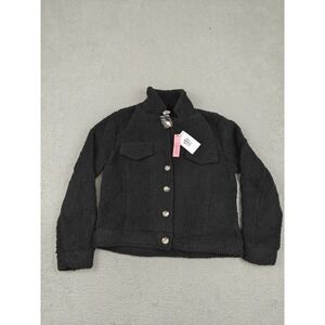 Andree By Unit Jacket Womens Small Black Sherpa Fleece Button Front Collared