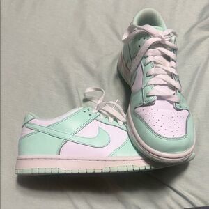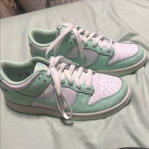Stylish mint green and white sneakers. Perfect for kids' casual wear. Comfortable and trendy design.