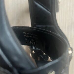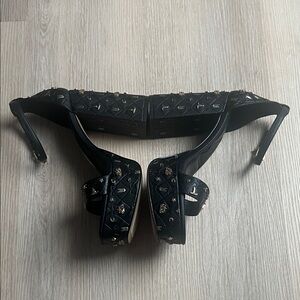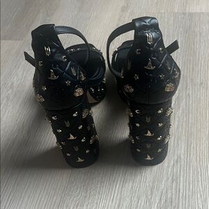 Aldo x Wicked Take Flight Black Gold Vegan Leather Platform Heels