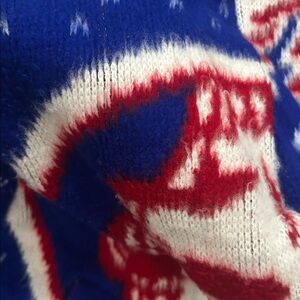 Vibrant blue and red hooded sweater featuring a bold skull design. Perfect for a unique style statement. Brand new !!