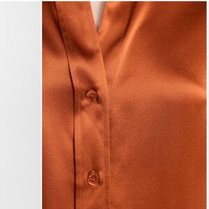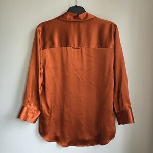 L'AGENCE 100% Silk Satin Rich Copper Button Dani 3/4 Sleeve Blouse NWOT Shirt S