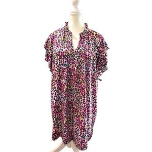 Sunshine & Rodeos 2XL Ruffle Sleeve Blouse Pink Multicolor Leopard