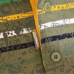 Vibrant stripes in green, yellow, and black. Comfortable crewneck design. Ideal for casual wear. Nice vintage one with aop. Real y2k style