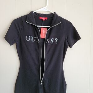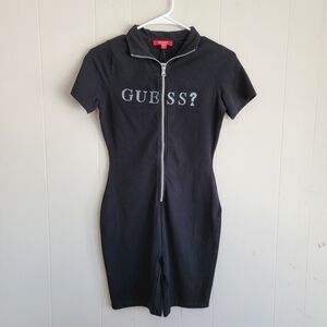 GUESS Nivia Black Zip-Up Short Sleeve Logo Romper