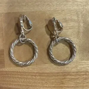 Vintage Silver Clip On Hoop Earrings