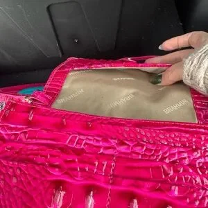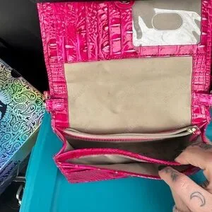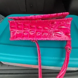 Chic and compact crossbody bag. Eye-catching pink leather. Ideal for day or night.