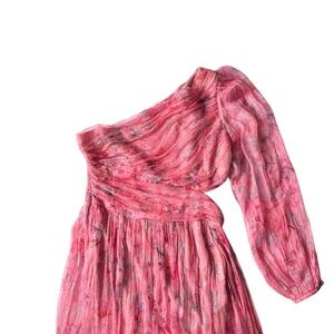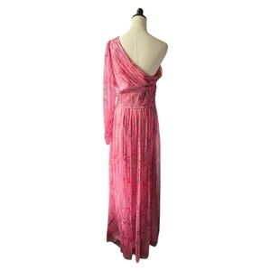 BHLDN Anthropologie Iris One Shoulder Cutout Printed Chiffon Maxi Gown | MEDIUM